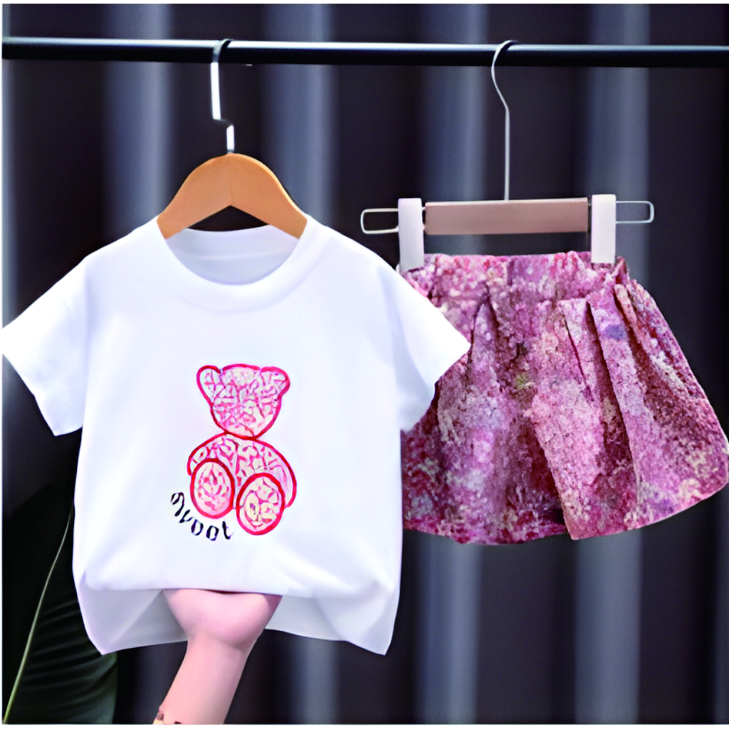 Zahra Setelan Baju Anak Cewek Sweet Bear Bahan Katun | One Set Anak Perempuan Umur 1 - 6 Tahun