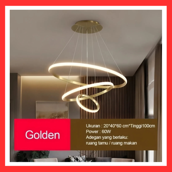 [Star] Lampu Gantung 3 Ring LED 3 Warna Ceiling Lamp Lampu Gantung Ruang Tamu Chandelier Murah +Remote