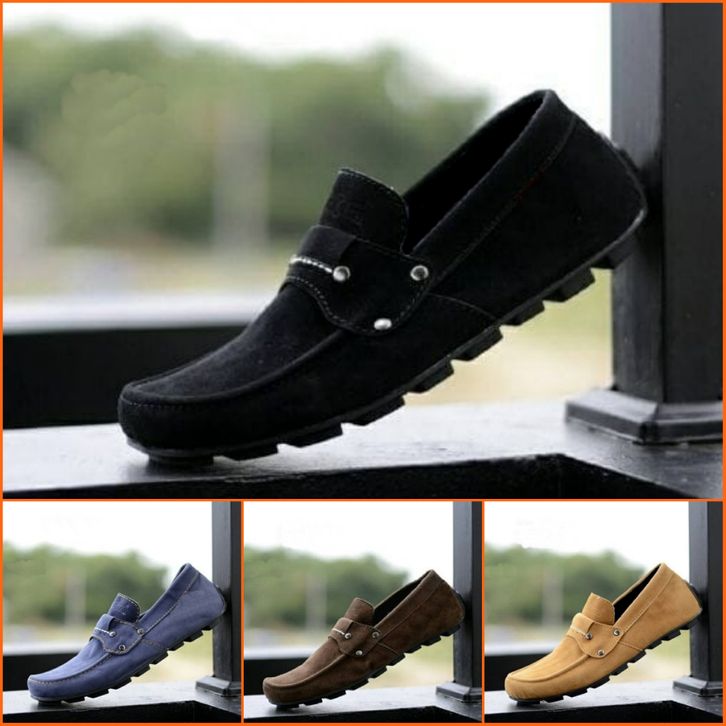 sepatu pria casual slip on formal kickers mocasin papara black brown navy tan