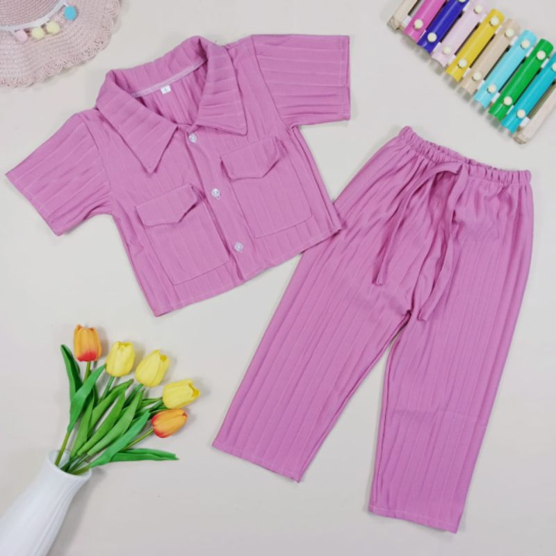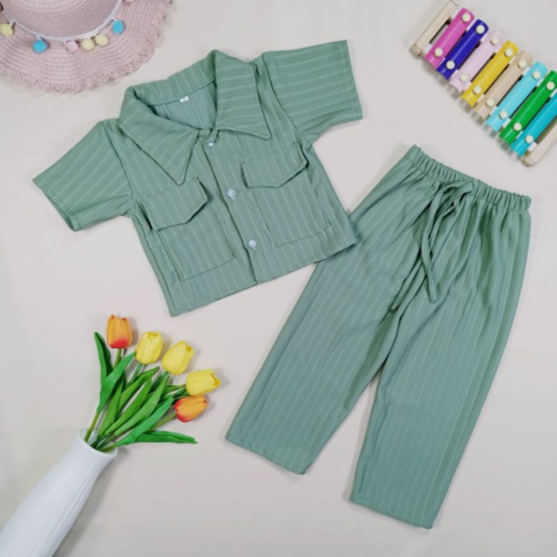 Baju Setelan KNIT Kemeja Anak Perempuan CROP TOP RAINA Bahan KNIT HORNET 1-10 Tahun