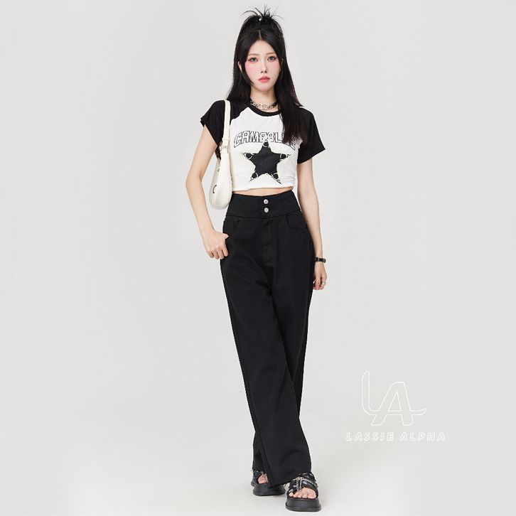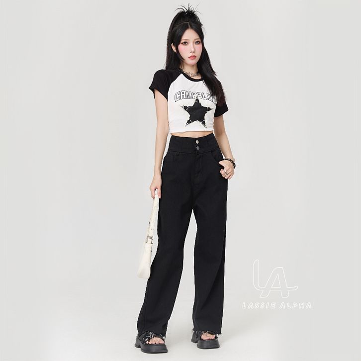 CELANA JEANS WANITA HITAM HIGHWAIST KULOT KOREAN STYLE KASUAL LASSIE ALPHA J63 ORIGINAL OFFICIAL STORE