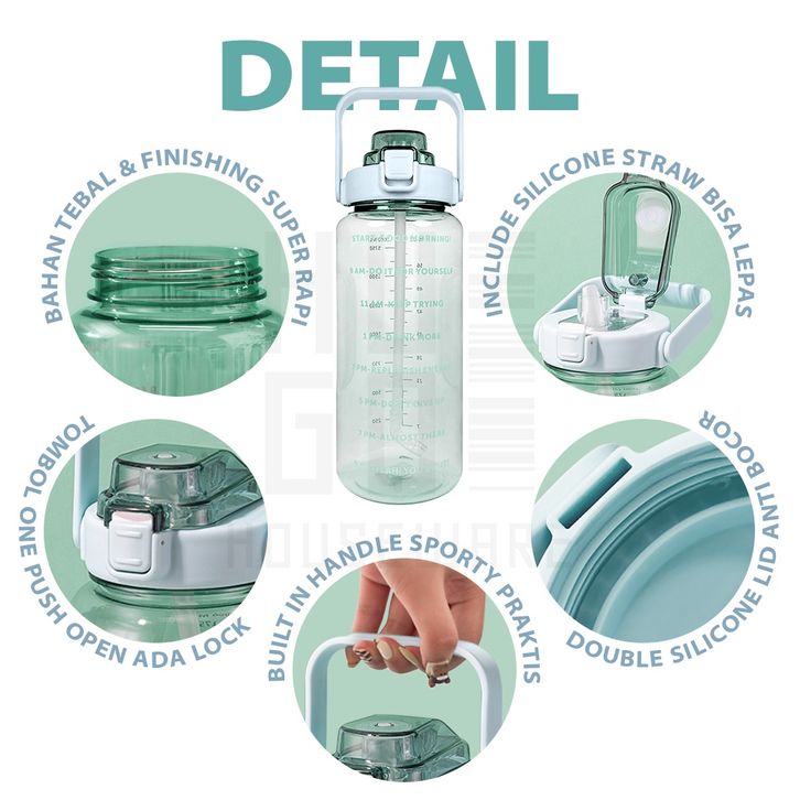 PROMO BOTOL MINUM MOTIVASI 2 LITER BENING BPA FREE HUGO TERLARIS KEKINIAN