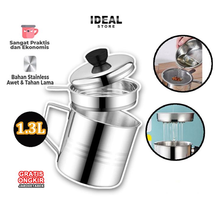 Oil Pot Wadah Saringan Minyak Stainless Steel 1.3L / Gelas Saringan Minyak / Tempat Saringan Minyak - Free Ongkir