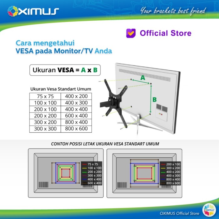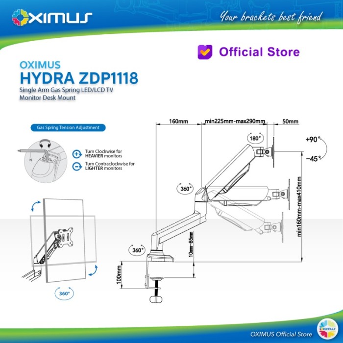 OXIMUS ZDP1118 1118 BRACKET TV LED LCD MONITOR GAS SPRING TILT SWIVEL - HITAM