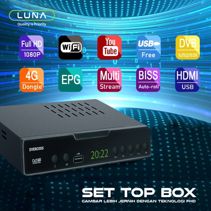 LUNA X EVERCOSS SET T0P BOX TV PENERIMA SIARAN DIGITAL FULL HD STB - HITAM