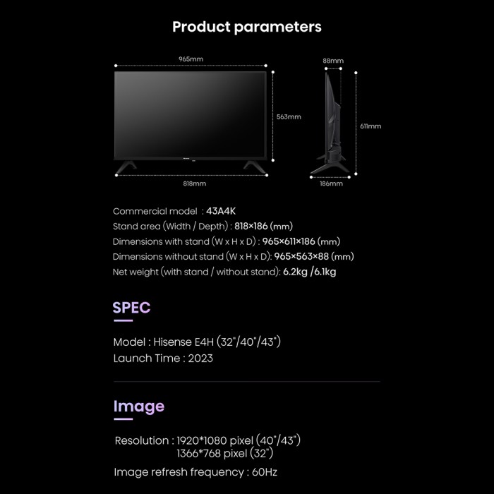 HISENSE 32 INCH VIDAA SMART HD TV-BEZELLES DESIGN-DUAL BAND WIFI 32E4H