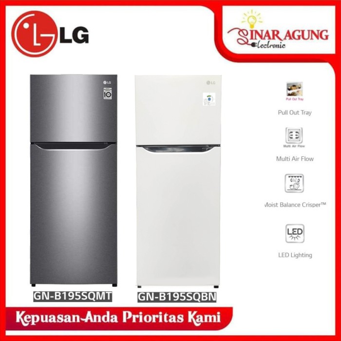 LG KULKAS 2 PINTU 202 L GN-B195SQMT - DARK GRAPHITE STEEL - GNB-202SQIB