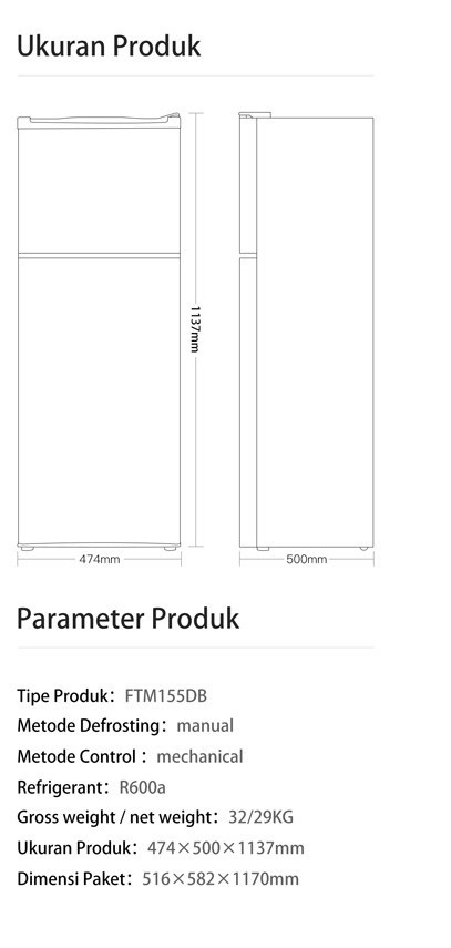 CHANGHONG FTM155DB KULKAS 2 PINTU 140 LITER - FTM155 -140L