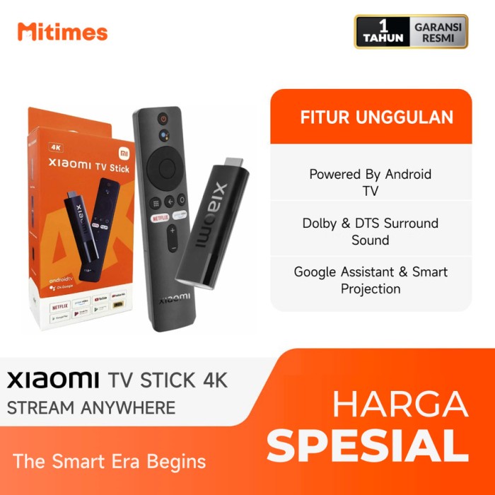 XIAOMI MI TV STICK 4K UHD SMART ANDROID TV GARANSI RESMI - 4K, NON BATTERY