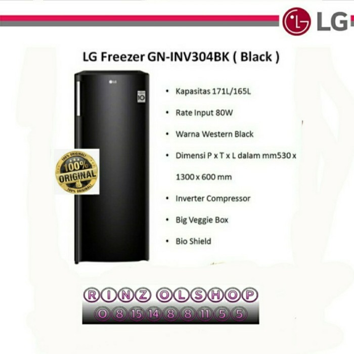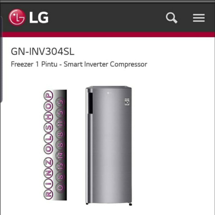 KULKAS FREEZER LG GN-INV304SL SMART INVERTER LEMERI PEMBEKU 6RAK 304SL - SILVER