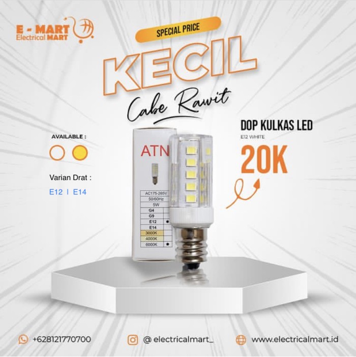 LAMPU DOP KULKAS LED DRAT E12 E14 5W 5 WATT PUTIH KUNING - DRAT E12, PUTIH