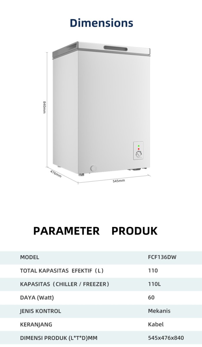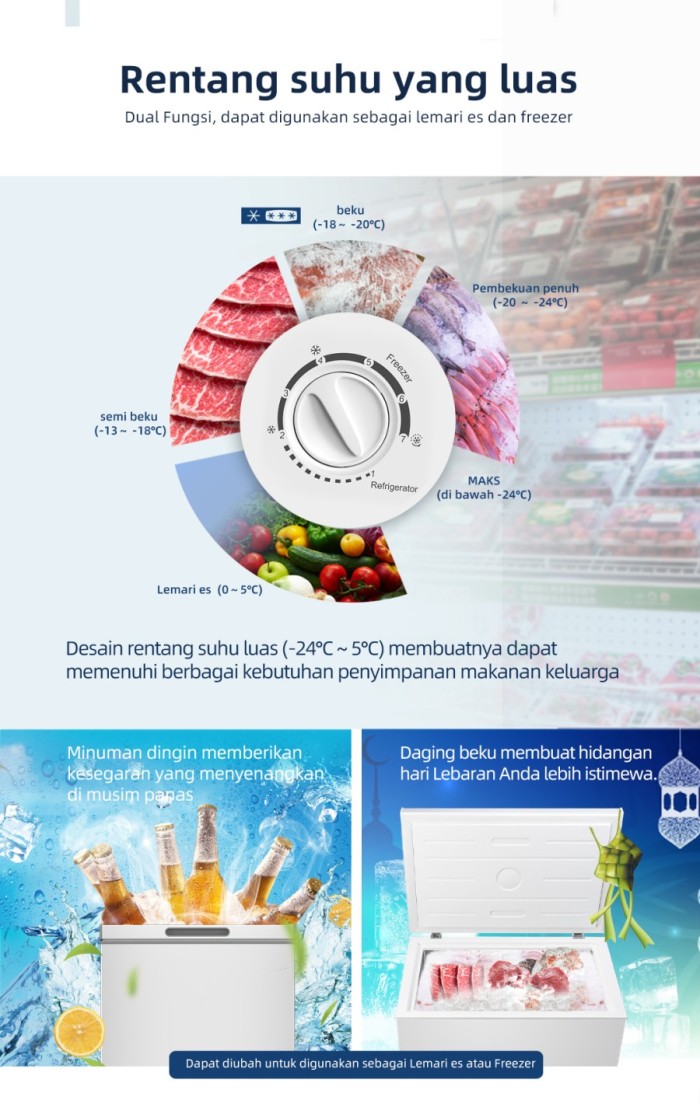 CHANGHONG FCF136DW CHEST FREEZER DUAL FUNGSI 110 LITER