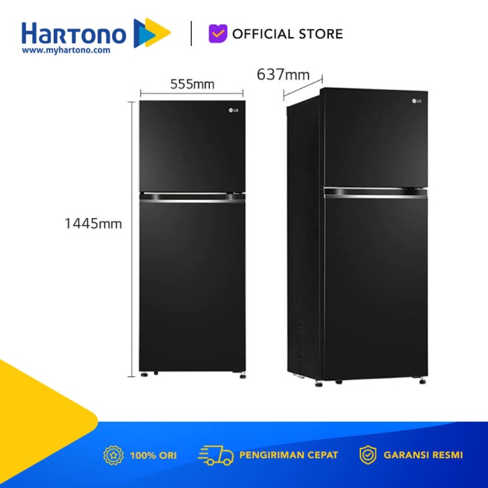 LG REFRIGERATOR KULKAS 2 PINTU 217L SMART INVERTER GVB212PQMB