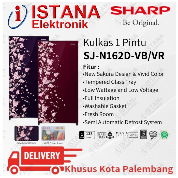 SHARP KULKAS 1 PINTU KIREI 3 SAKURA SERIES 133 LITER SJ-N162D-VB/VR