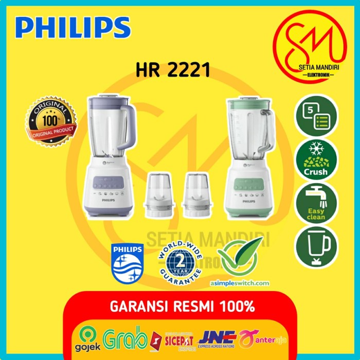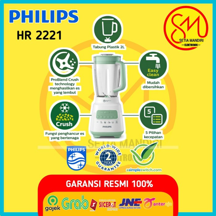 PHILIPS HR2221 BLENDER 5000 SERIES 2L PLASTIC - HR2221/00 - HIJAU
