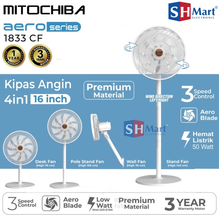 KIPAS ANGIN 4 IN 1 MITOCHIBA AERO SERIES 16 INCH 1833 CF / 1833CF - PINK