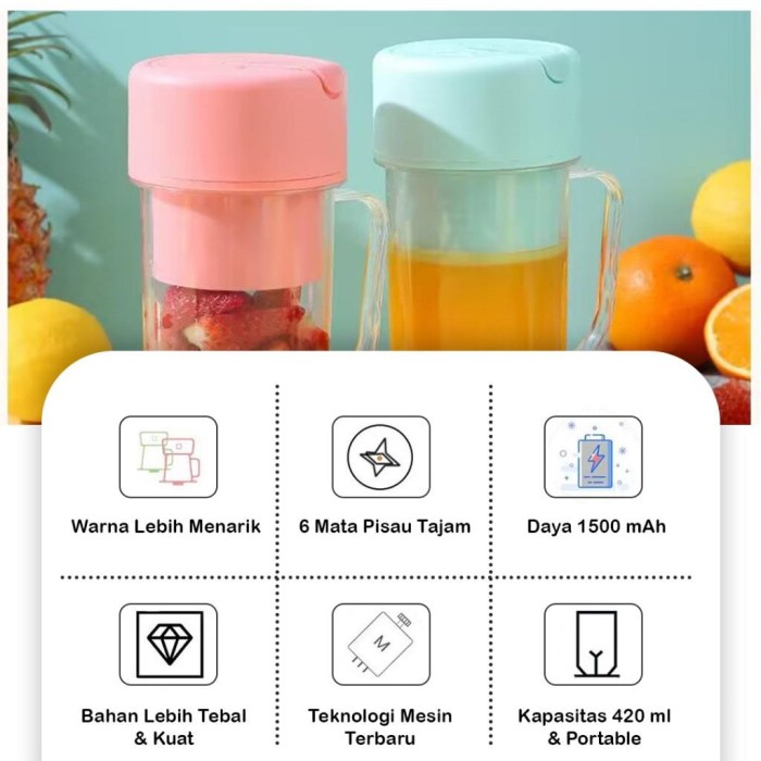 CRUISHER JUICER MINI JUICE CUP BLENDER PORTABLE GELAS + SEDOTAN - HIJAU