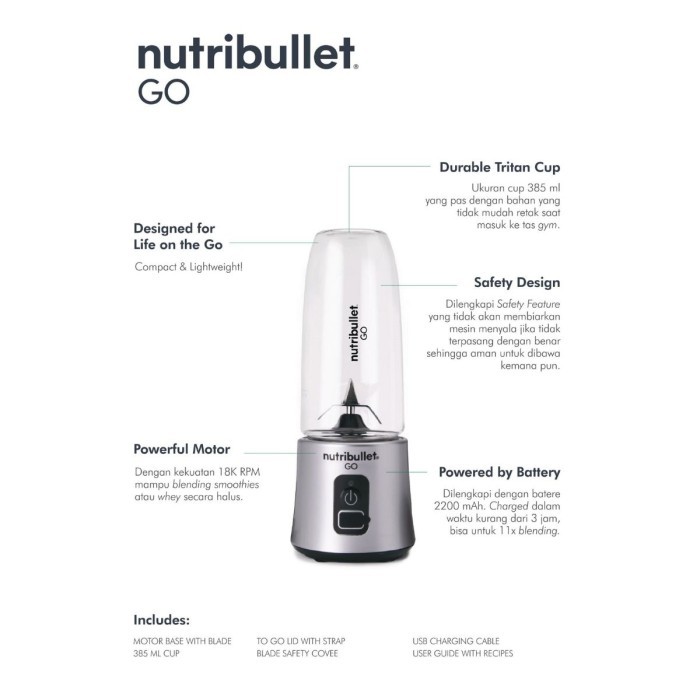 NUTRIBULLET GO SILVER BLENDER PORTABLE