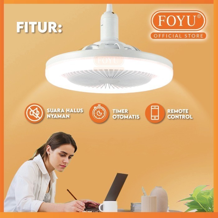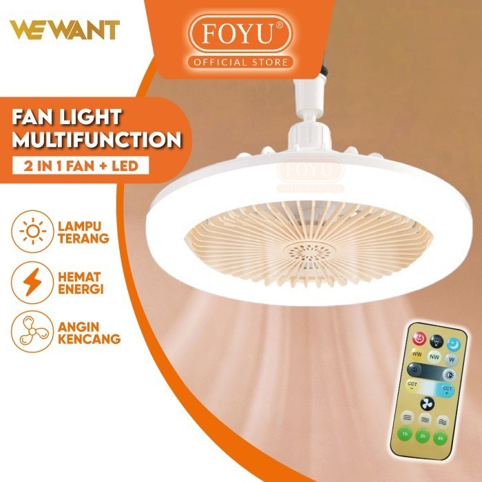LED KIPAS ANGIN PLAFON 2IN1 LAMPU CEILING 36W FAN REMOTE - PUTIH, REGULER