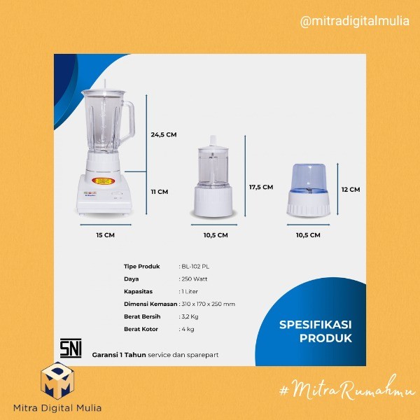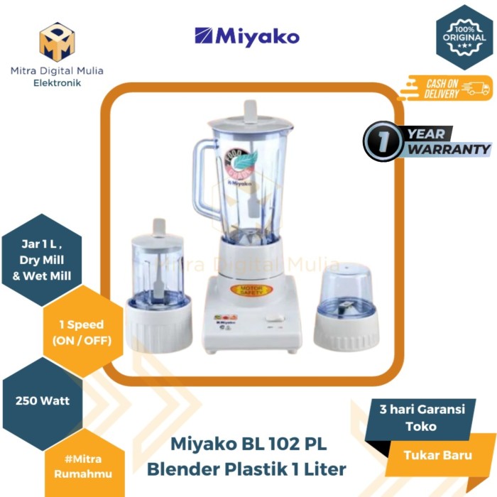 MIYAKO BL 102 PL BLENDER PLASTIK 1 L 3IN1 200W BL102PL