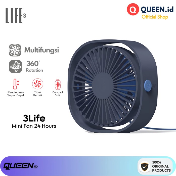 3LIFE DESK FAN KIPAS ANGIN MEJA 360 - KIPAS MEJA USB 24 HOURS WIRED - NAVY