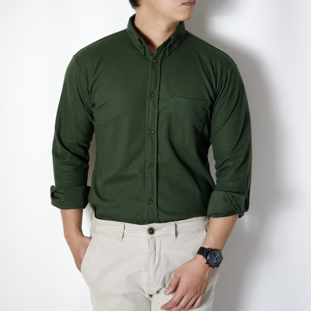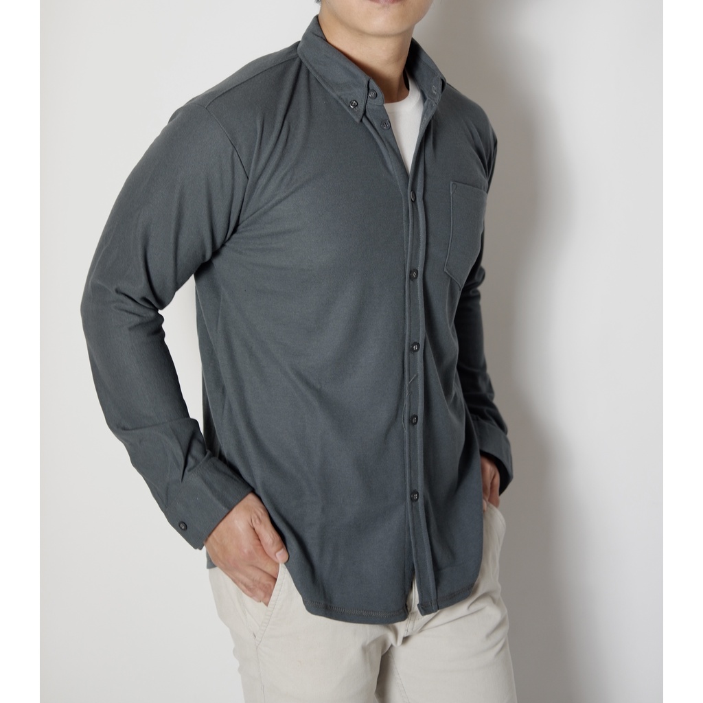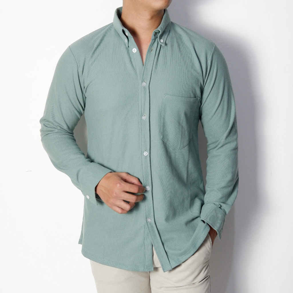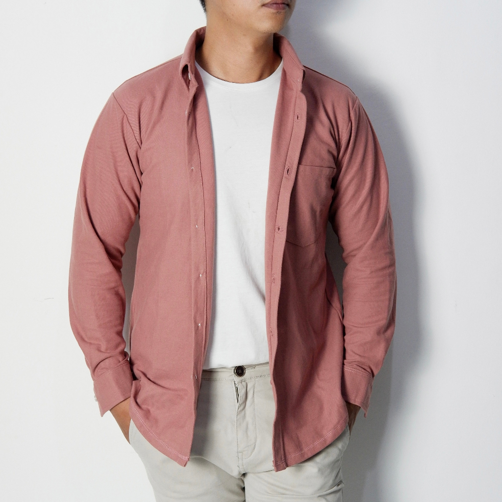 KEMEJA PRIA LENGAN PANJANG CASUAL POLOS BAHAN COTTON PIQUE