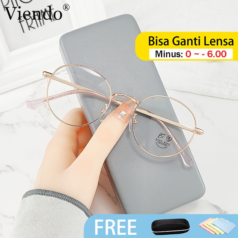 KACAMATA MINUS ANTI RADIASI PHOTOCROMIC WANITA PRIA KOREA BULAT OVAL BESI FRAME UV400 2 IN 1 BLUECROMIC VIENDO