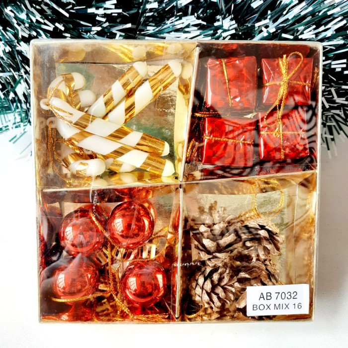 PAKET ACC BOLA NATAL ISI 16 SANTA HIASAN POHON NATAL MURAH GROSIR SALE - AB-6077 BOX 16