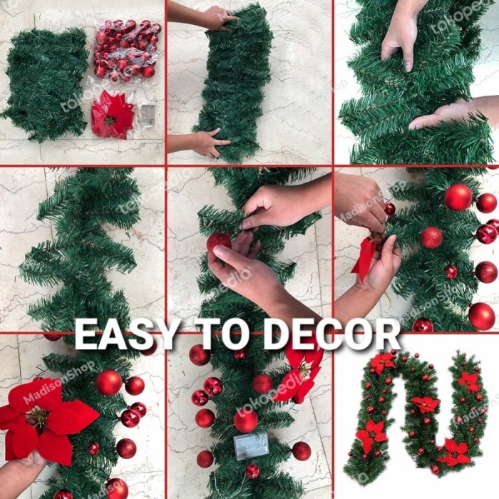 BUNGA NATAL LINGKAR GARLAND HIJAU DAUN HIASAN CHRISTMAS