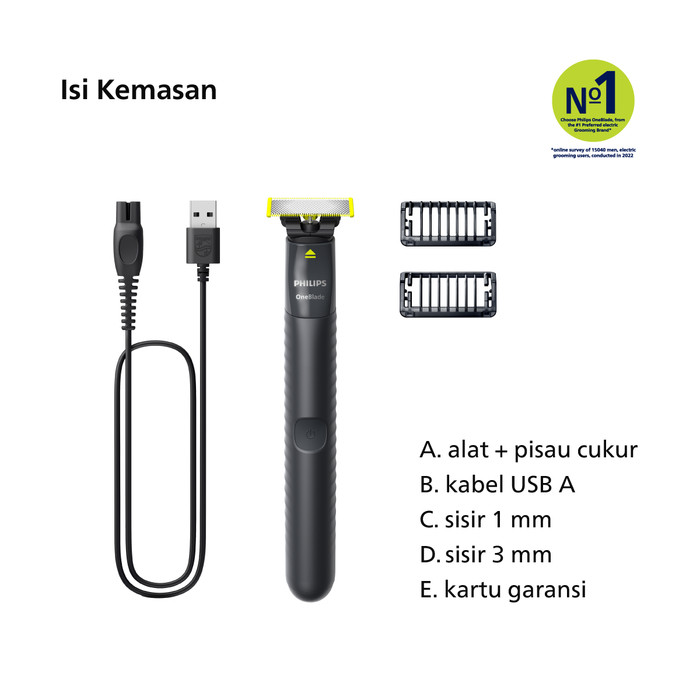 PHILIPS ONEBLADE QP1424/10 PENCUKUR & PENATA JENGGOT HYBRID ELEKTRIK