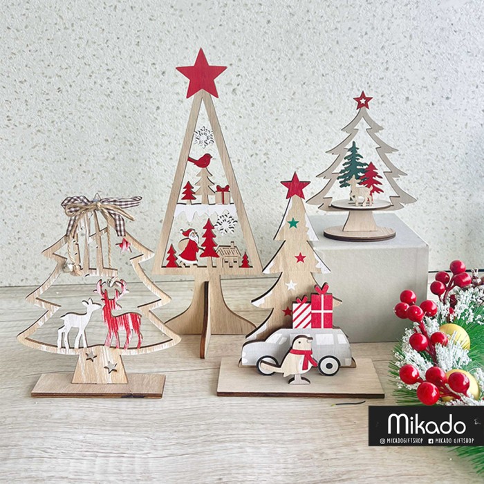 DECORATION WOODEN CHRISTMAS TABLE / HIASAN NATAL KAYU - TREE ROCKING