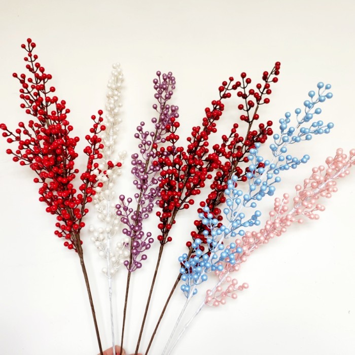BUNGA CHERRY MURAH HIASAN NATAL TAHUN BARU BUNGA MERAH NATAL DEKORASI - 12 CAB MERAH