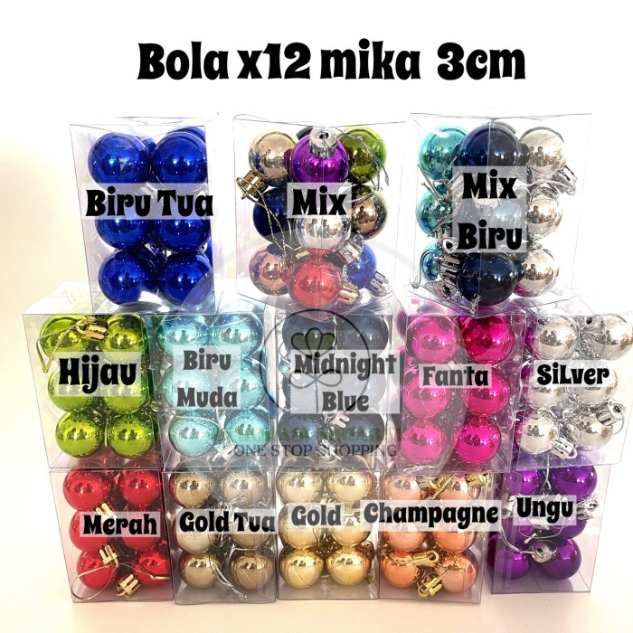 HIASAN NATAL BOLA X12 MIKA KECIL D 3CM - BIRU MUDA