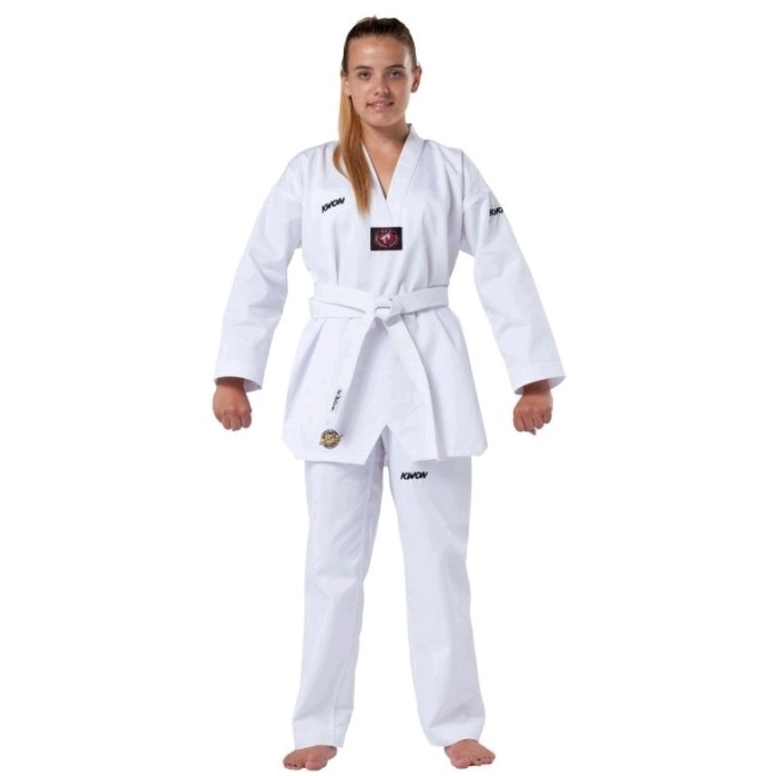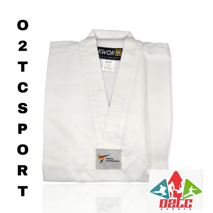 DOBOK KWON CLUB LINE KERAH PUTIH BAJU TAEKWONDO ORIGINAL - 110CM