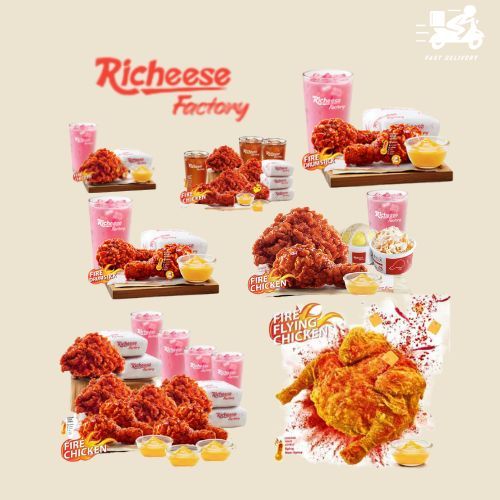 BBQ Sauce Lev 0 - Lev 5, Big Eight Fire Chicken, Big Eight Flying Chicken / Richicken, Big Five Fire Chicken, Big Five Flying Chicken / Richicken, Big Four Fire Chicken, Big Four Flying Chicken / Richicken, Combo 1 Flying Chicken Personal, Combo 1 Richicken, Combo 2 Flying Chicken Personal, Combo 2 Richicken, Combo Chicken FB-1, Combo Chicken FB-2, Combo Chicken RB-1, Combo Chicken RB-2, Combo Fries Fire Burger Beef (Atomic/Nuclear), Combo Rich Burger - Beef, Fire Chicken 3 Pcs, Fire Chicken 5 Pcs, Fire Chicken 8 Pcs, Fire Flying Chicken - Spicy Smoky, Flying Chicken 3 pcs, Flying Chicken 5 pcs, Flying Chicken 8 pcs, Rich Burger - Beef, Richicken 1 Pcs, Richicken 3 Pcs, Richicken 5 Pcs, Richicken 8 Pcs