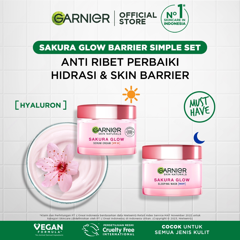 PAKET SKINCARE GARNIER SAKURA GLOW SKIN BARRIER SIMPLE SET - UNTUK KULIT GLOWING ANTI RIBET & PERBAIKI SKIN BARRIER