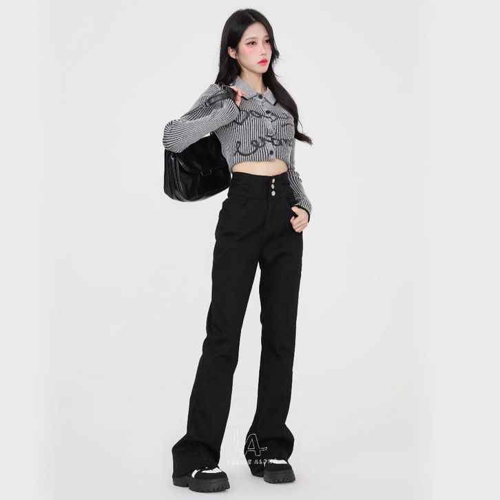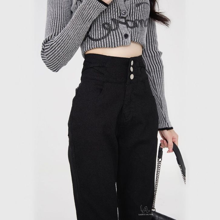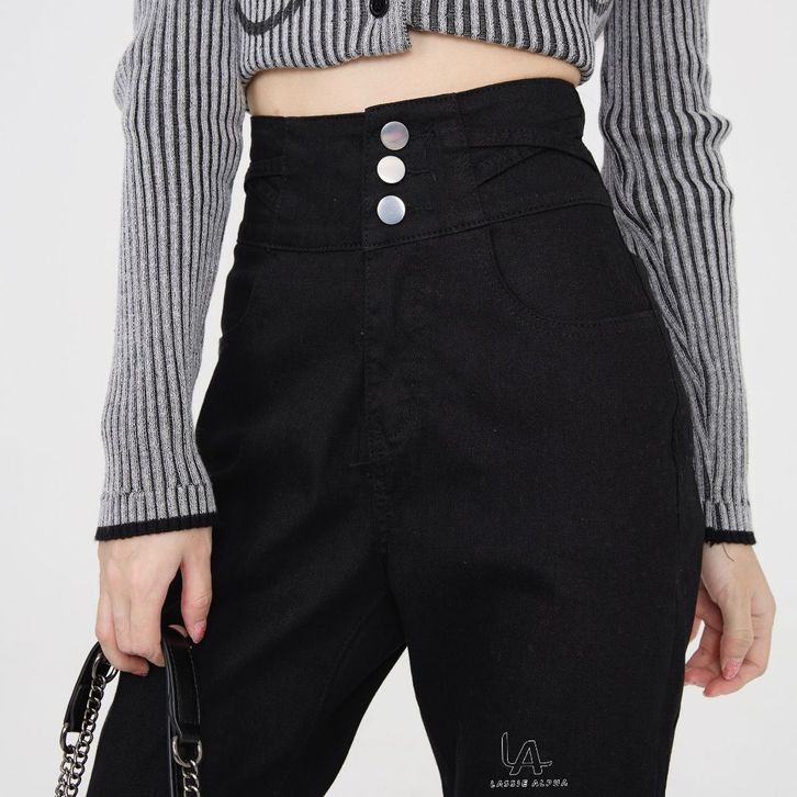 CELANA JEANS WANITA HITAM HIGHWAIST KULOT BOYFRIEND STRETCH CUTBRAY LASSIE ALPHA J60 ORIGINAL OFFICIAL STORE
