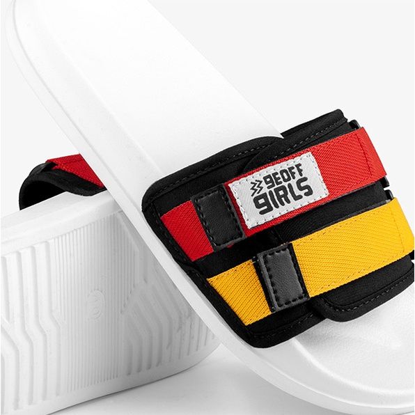 GEOFF MAX - FREDDO WHITE RED YELLOW | SANDALS SLIPPER | SANDAL SELOP PUTIH | SANDAL SLIDE | SANDA WANITA MURAH ORIGINAL