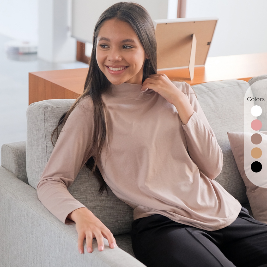 ISLA BASIC INNER KERAH TINGGI - INNER - MANSET KAOS - INNER WANITA LENGAN PANJANG - SINGLE KNIT COTTON - ATASAN - KAOS