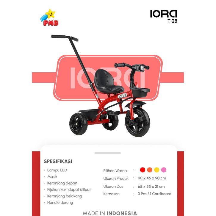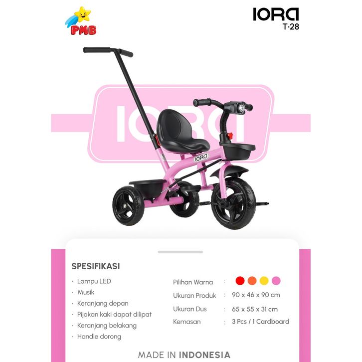 Sepeda Anak Roda 3 Perempuan / Laki Laki PMB IORA T28 - Sepeda Roda Tiga