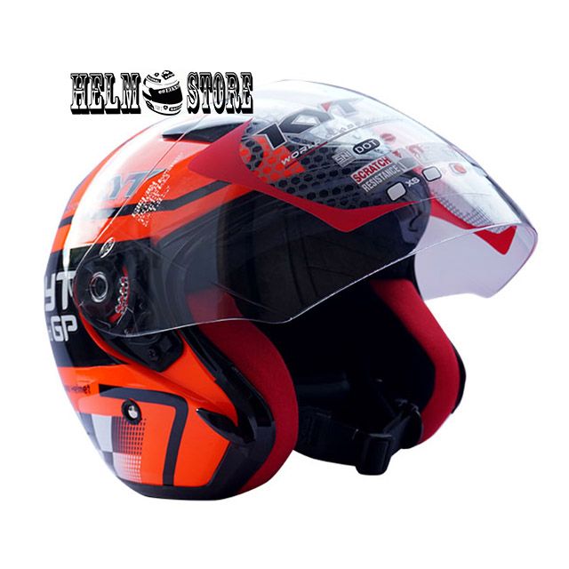 HELM KYT DJ MARU #11 RED FLUO GUNMETAL ORIGINAL / KYT DJMARU HALF FACE SNI DOT