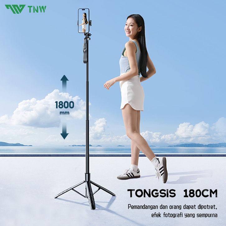 Tongsis Bluetooth 1.8M Tongsis Tripod Remote 180CM Selfie Stick Tripod Handphone untuk Kamera Hp