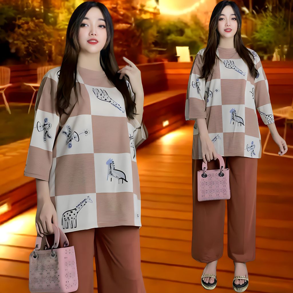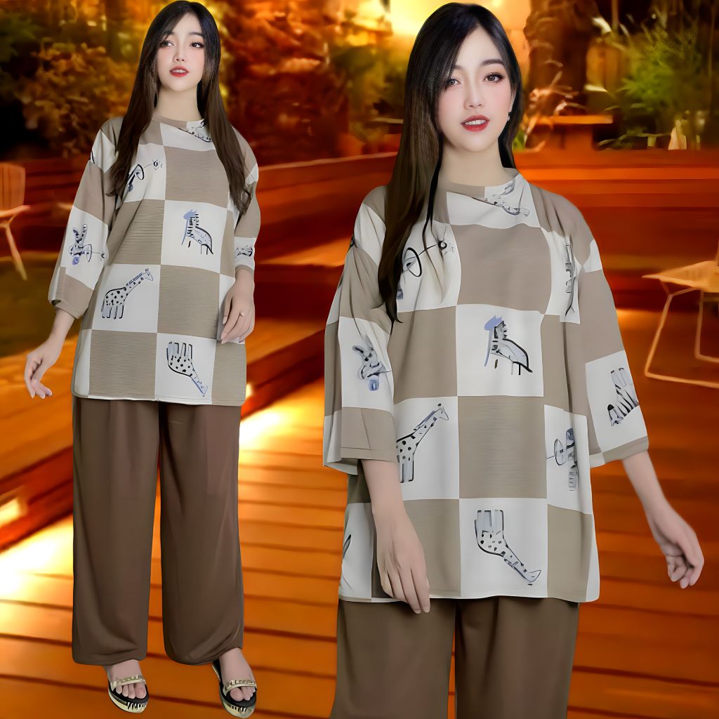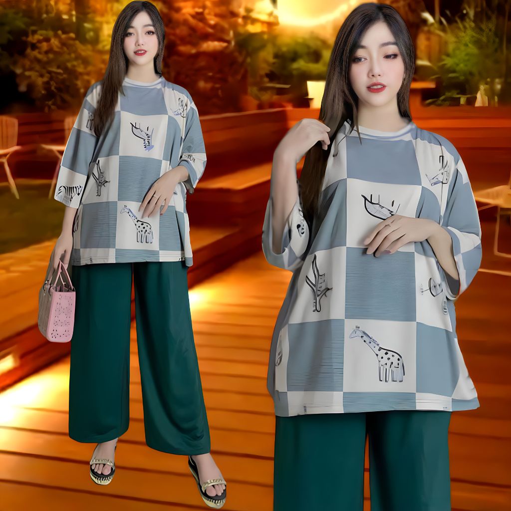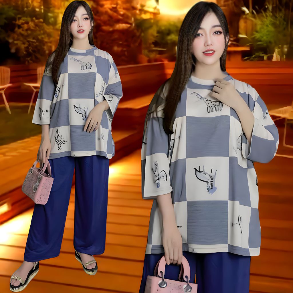 SETELAN WANITA JUMBO LD 120 & LD 140 ATASAN WANITA DAN CELANA KULOT WANITA BAJU OVERSIZE