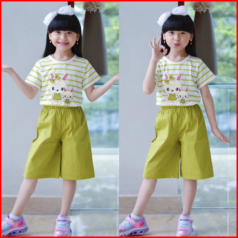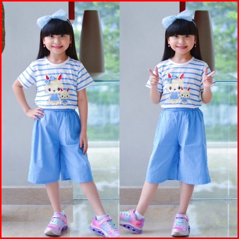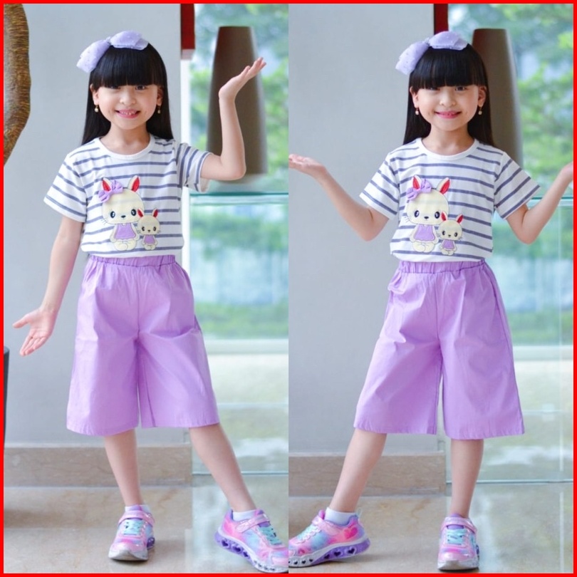 Setelan Celana Kulot Atasan Salur Terbaru Anak Perempuan Umur 4-11 Tahun