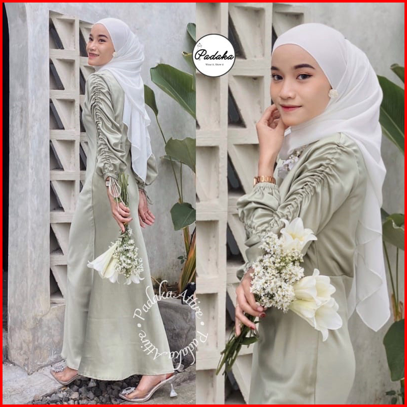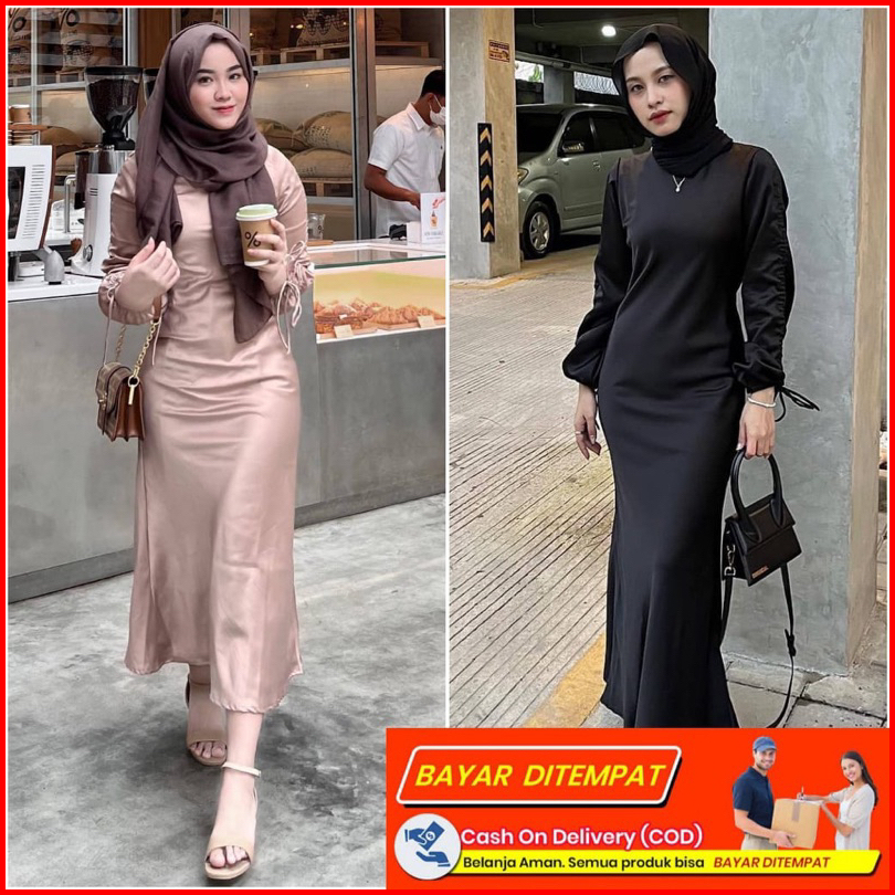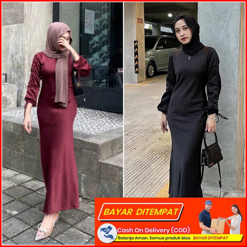Gaun Darla Slik Dress Mermaid Lengan Serut Satin Pesta Kodangan Bridesmaid Polos Baju Lebaran