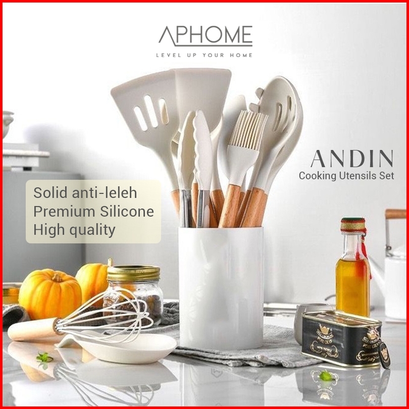 Aphome Alat Masak Silicone Dapur Paket Kitchen Utensils Set Dengan Wadah Bpa Free Dan Fda Approved Andin