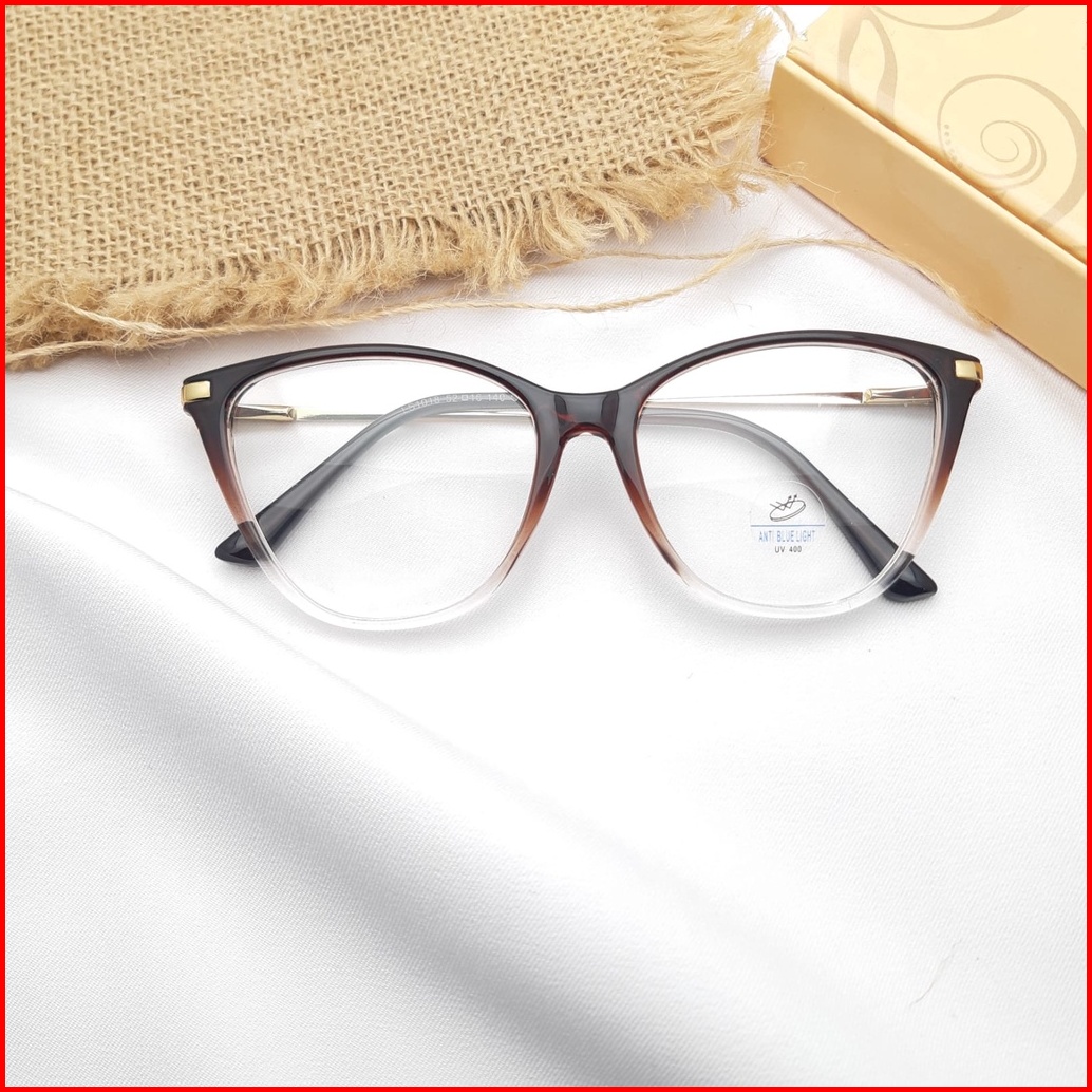 Paretocromic Kaca Mata Cat Eye Frame 1018 Free Box Lap Lensa Bluecromic Photocromic Antiradiasi Anti Uv Blue Ray