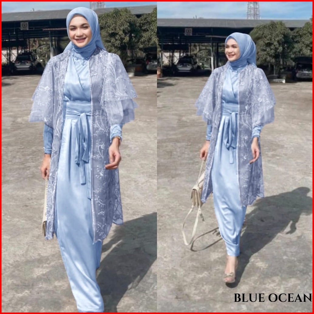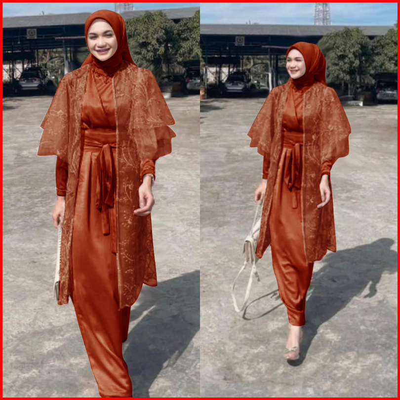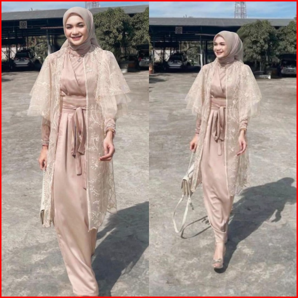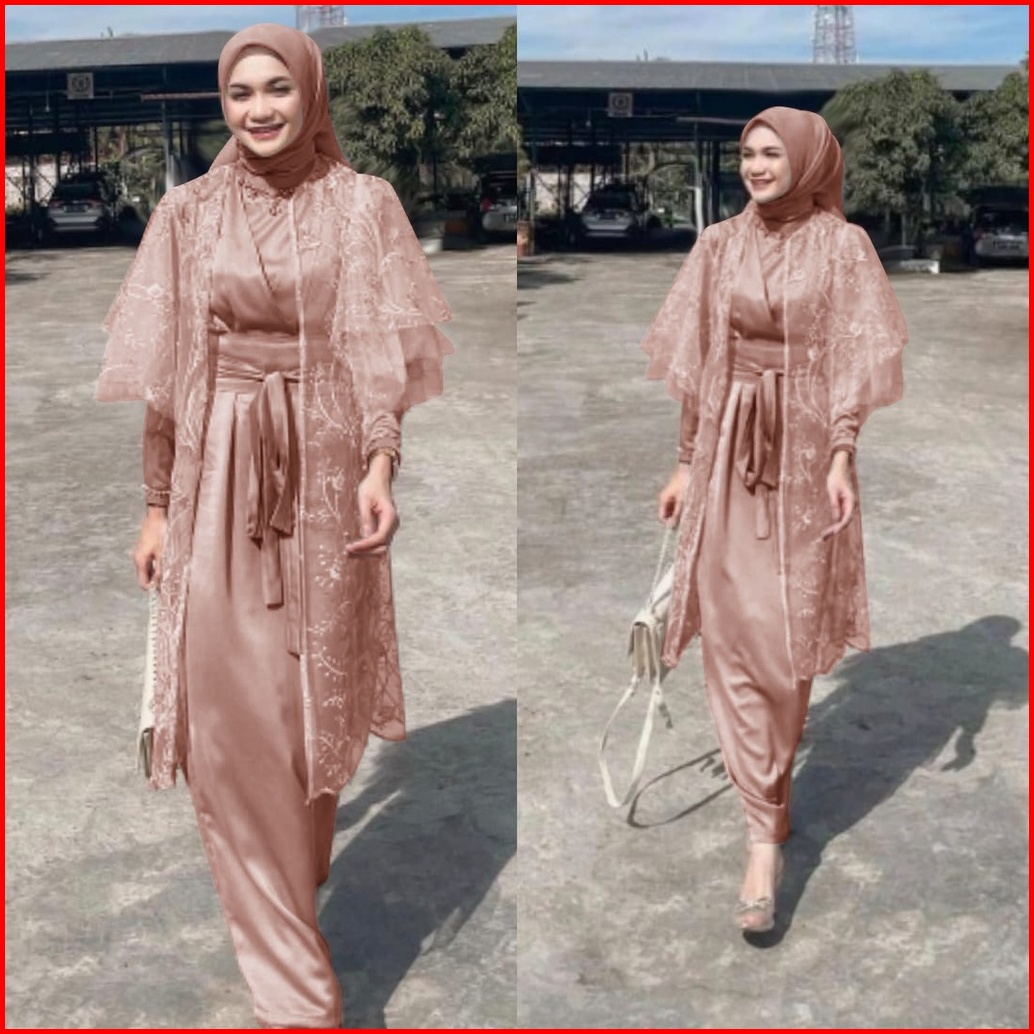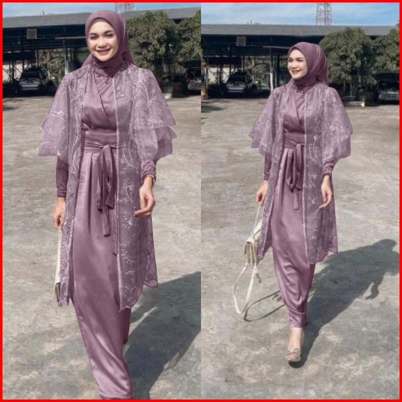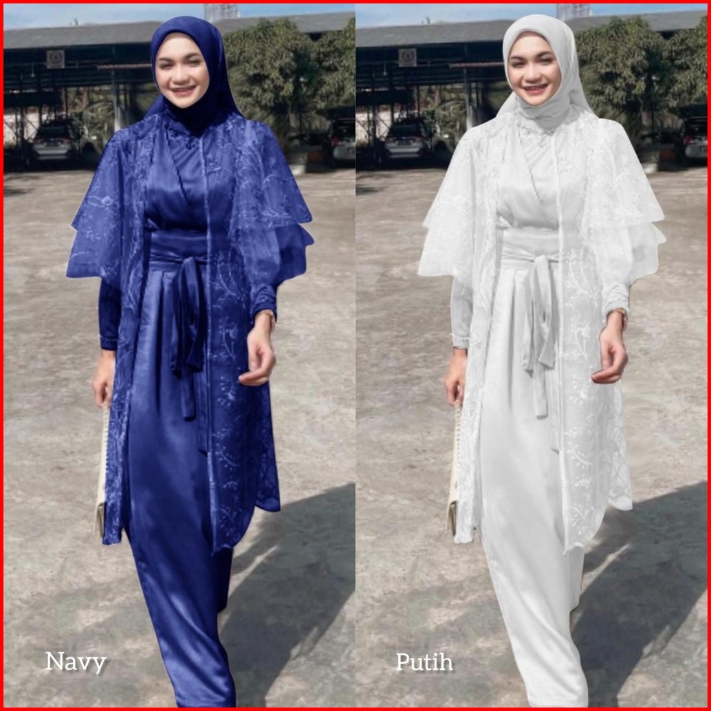 Felicio77 Lucianna Gamis Brukat Set Outer Premium Oufit Seragam Lebaran