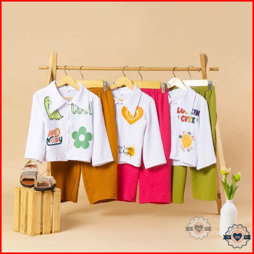 Baju Setelan Anak Crop Top Crinkle Emoji Dtf Ruffle Tee Kemeja Anak Perempuan Emoji Set Viral