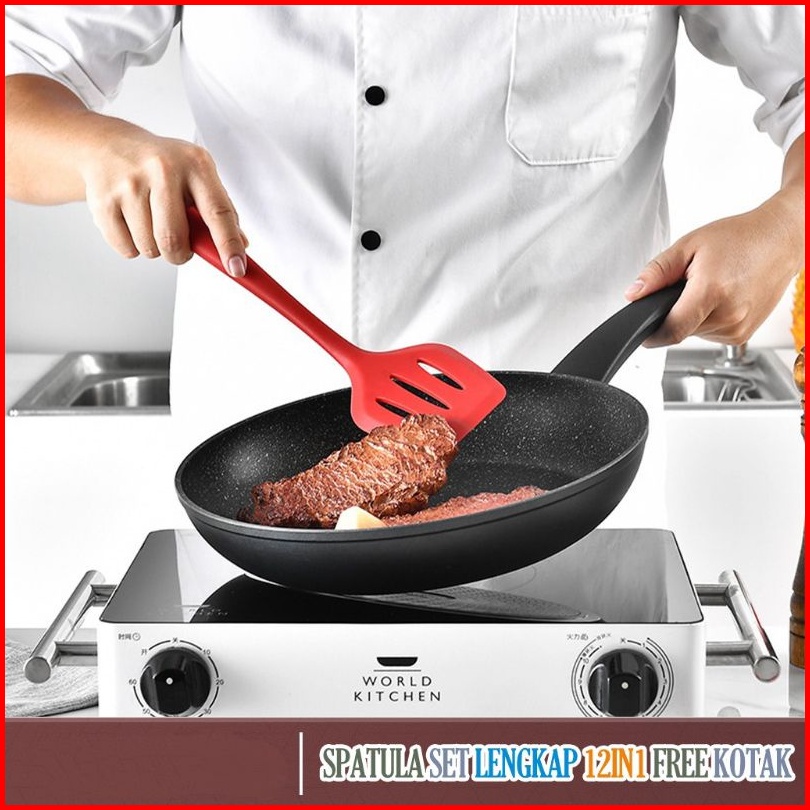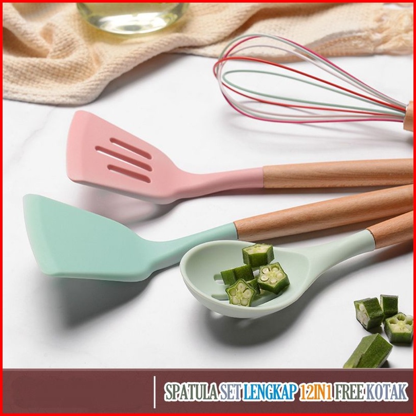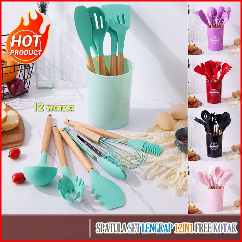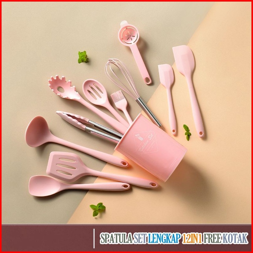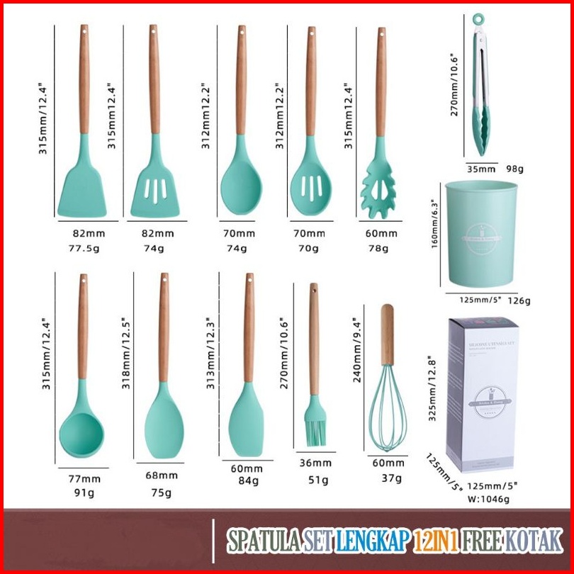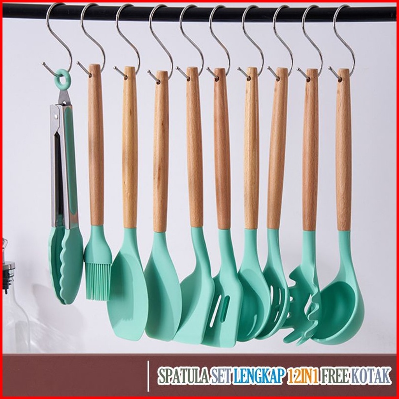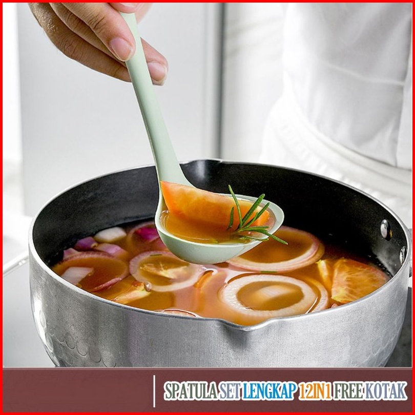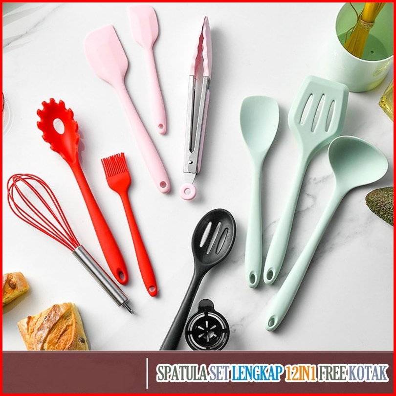 Skylosilicone Spatula Utensil Set 12pcs Alat Masak Sehat Tahan Panas Kitchen Tools Set Silikon Sutil Sodet Capitan Jepit